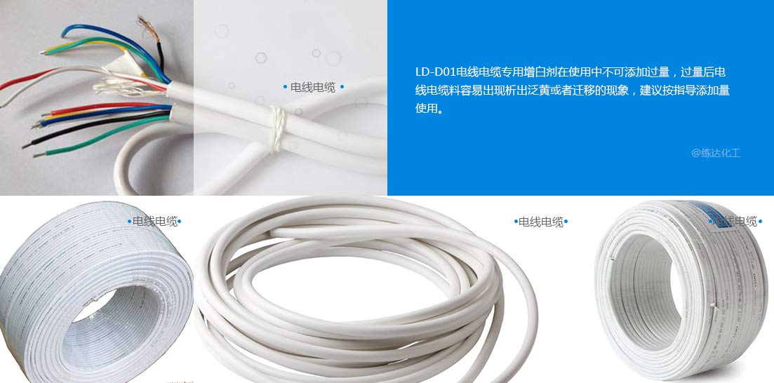 注意事項LD-D01電線電纜專用增白劑在使用中不可添加過量,過量后電線電纜料容易出現(xiàn)析出泛黃或者遷移的現(xiàn)象,建議按指導添加量使用。如您有任何技術(shù)或使用問題,請與我公司聯(lián)系。對我公司供應的產(chǎn)品,有責任進行試驗,以驗證是否適合所擬訂的工藝和用途;