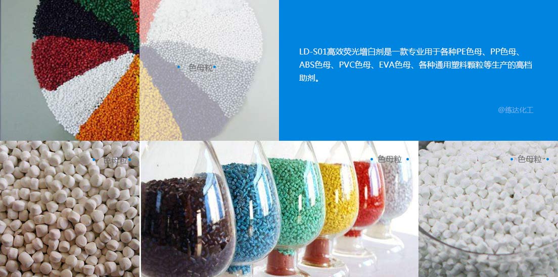 使用范圍廣LD-S01熒光增白劑是一款用于各種PE色母、PP色母、ABS色母、PVC色母、EVA色母、各種通用塑料顆粒等生產(chǎn)的高檔助劑。03